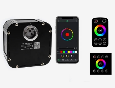 The Astral 100 series fiber–optic generator with 8 colors and a halogen lamp is a lighting source connected to special lamps, which allows for maximum effective illumination. The operation of the device is controlled by the remote control. It is possible to program continuous or sequential color changes at different time intervals. The generator is equipped with an automatic shutdown timer. The Astral 100 series fiber–optic generator is a profitable purchase for high-quality lighting.